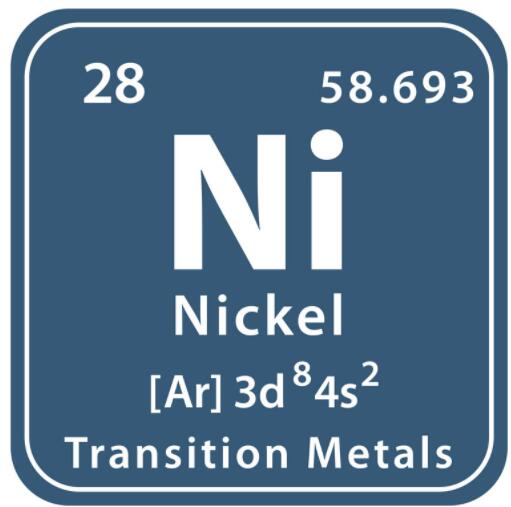 鎳是一種非常豐富的天然元素,純鎳是一種堅硬的銀白色金屬。鎳可以與其他金屬結合,如鐵、銅、鉻和鋅,形成合金,這些合金用于制造硬幣、珠寶以及閥門和熱交換器等物品。大多數(shù)鎳用于制造不銹鋼。鎳可以與其他元素如氯、硫和氧結合形成鎳化合物,許多鎳化合物在水中很容易溶解并且有綠色。鎳化合物用于鍍鎳、給陶瓷著色、制造一些電池,以及作為催化劑的物質,可以提高化學反應的速度。鎳存在于所有土壤中,并從火山中釋放出來。鎳也存在于隕石和海底。鎳及其化合物沒有特征氣味或味道。