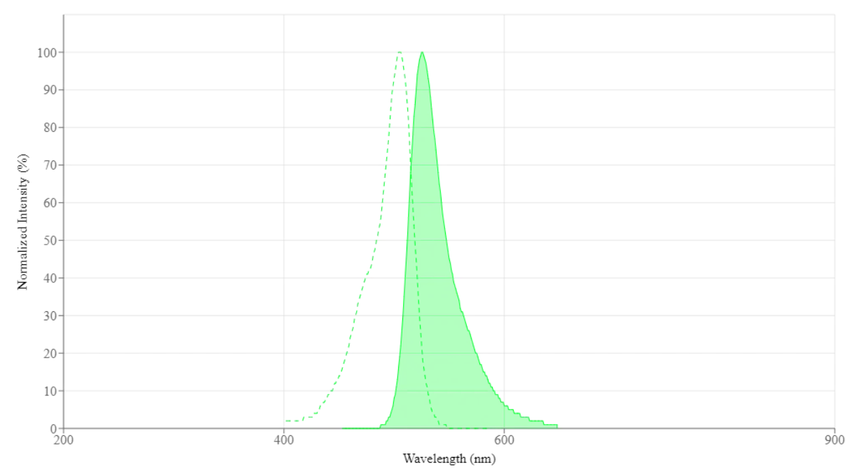 DCFH-DA的最大激發(fā)和吸收波長分別為:Ex/Em=488/525 nm.
