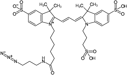 Inchi | InChI=1S/C35H46N6O10S3/c1-34(2)27-23-25(53(46,47)48)14-16-29(27)40(20-7-5-6-13-33(42)37-18-9-19-38-39-36)31(34)11-8-12-32-35(3,4)28-24-26(54(49,50)51)15-17-30(28)41(32)21-10-22-52(43,44)45/h8,11-12,14-17,23-24H,5-7,9-10,13,18-22H2,1-4H3,(H3-,37,42,43,44,45,46,47,48,49,50,51) |