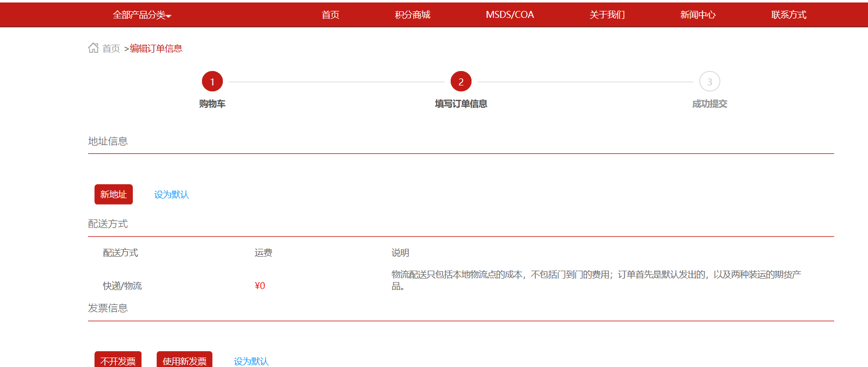 4. 填寫發(fā)貨地址,發(fā)票信息