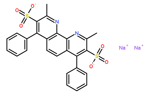 Bathocuproinedisulfonic acid 是一種水溶性的 Bathocuproine 類似物,在紫外光下會(huì)發(fā)出熒光。 由于這種類似物形成的 Bathocuproine-Cu(I) 復(fù)合物是水溶性的,因此 Cu(I) 可以通過(guò)在 483-522 nm 處直接測(cè)量測(cè)定溶液而無(wú)需溶劑萃取來(lái)確定。 浴銅嘌呤二磺酸-Cu(I)配合物的摩爾吸光率為1.2×104。通過(guò)在流動(dòng)注射分析中使用 Bathocuproine-disulfonic 酸快速測(cè)定 30 ppm 左右的 Cu(I)。 可檢測(cè)水樣中低至 0-15 ppb 的 Cu(I)。也用作銅螯合劑。